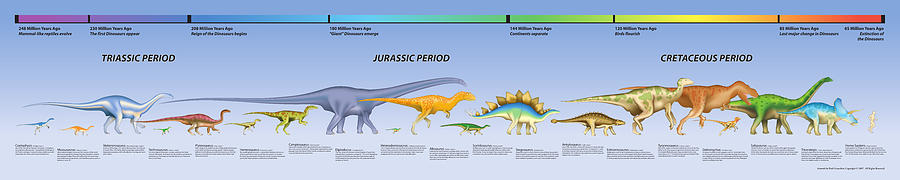 Later, in de Jura-periode, werd de aarde groener. Er groeiden enorme bossen, en de dinosaurussen werden reuzen. Lange nekken staken boven de bomen uit, zoals bij de Brachiosaurus, terwijl roofdieren zoals Allosaurus op jacht gingen.