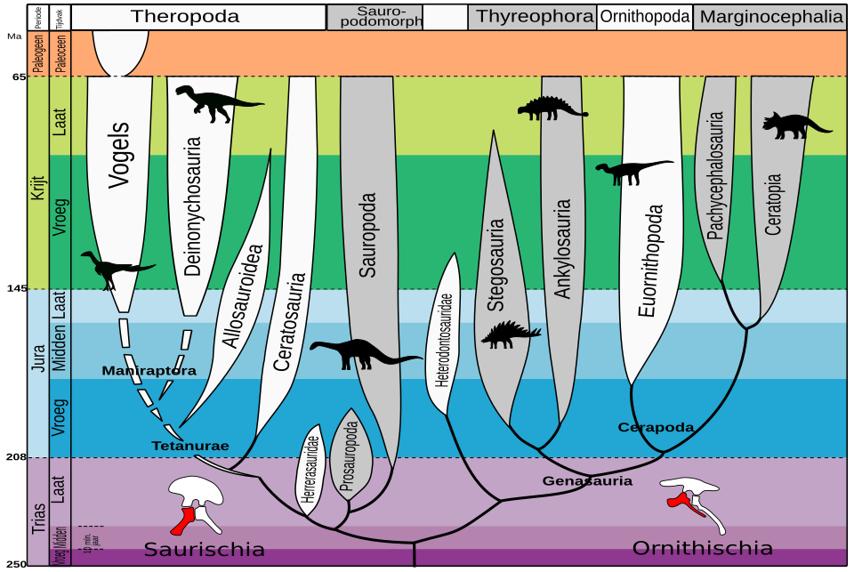 In de Krijt-periode leefden de bekendste soorten: de machtige Tyrannosaurus rex en de gehoornde Triceratops. Het was een wereld vol leven, maar aan het einde gebeurde iets verschrikkelijks: een enorme meteoriet sloeg in. De lucht werd donker, planten stierven, en langzaam verdwenen bijna alle dinosaurussen. Alleen sommige kleine soorten overleefden – en uit hen kwamen later de vogels.